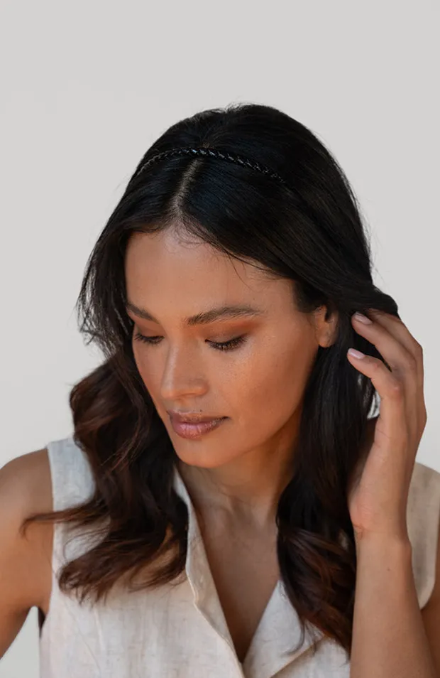 L. Erickson Braided 1/4″ Skinny Headband is a chic accent piece. Featuring a unique braided design, the skinny headband is a quick and easy styling solution for any occasion. An elegant blend of comfort and fashion, this sleek headband is an eye-catching addition to your ensemble.