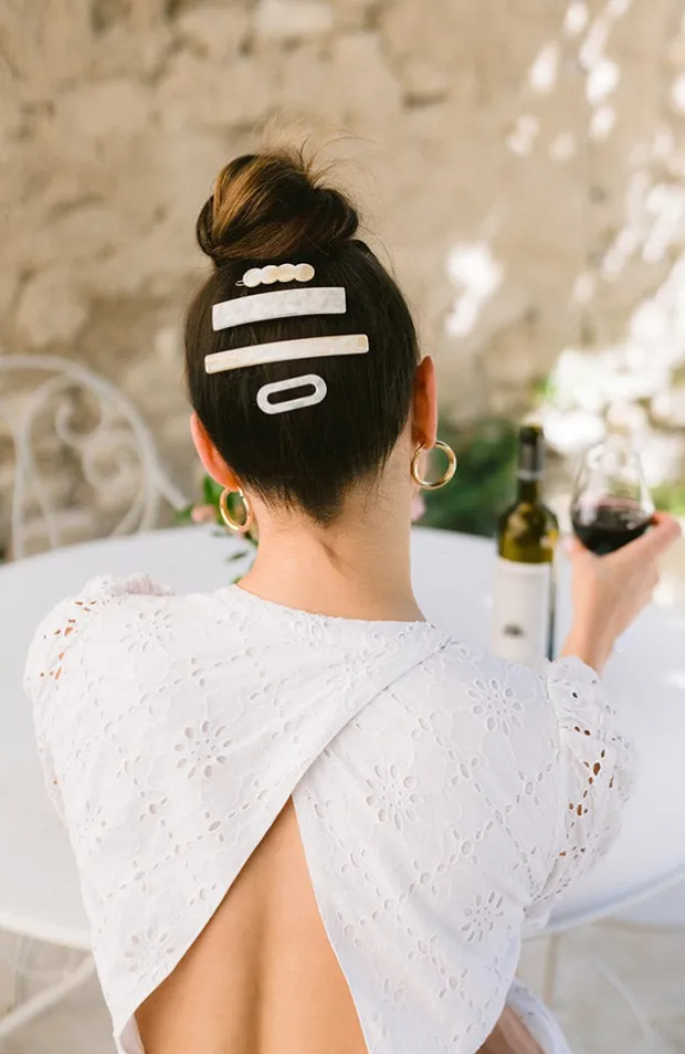 This glossy, white barrette clip is the perfect blend of classic and modern. The Classic Rectangle Barrette – Coconut Milk is handmade in France and features a traditional French-style barrette clasp. Add that extra touch of glamour to any look with its versatile size and stunning design, a sophisticated French hair accessory for any ensemble!