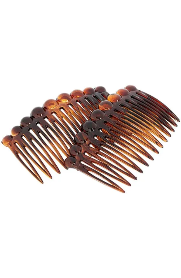 The France Luxe Dot Side Comb Pair – Classic is an elegant set of hair accessories. Handcrafted in France, these hair combs are polished to a beautiful sheen and features dot design across the top. They are ideal for medium and thick hair and will compliment any outfit with their luxurious look.