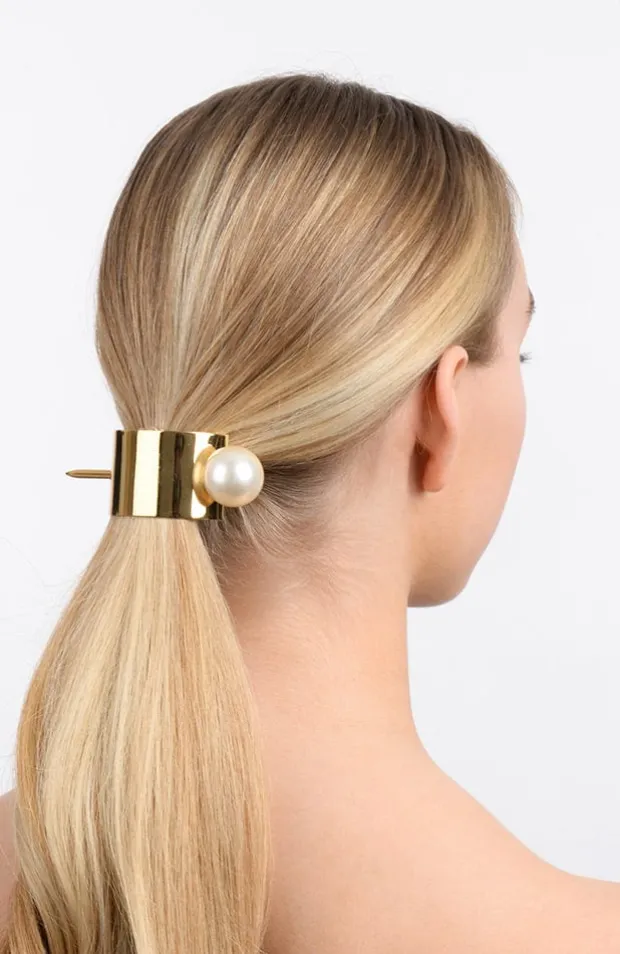 Create beautiful, elegant hairstyles with the L. Erickson Metal & Pearl Slide. Made of smooth metal with a pearl accented pin, the hair slide is a unique alternative to traditional hair pins and clips. With its versatile design and chic metallic sheen, this sleek slide is an eye-catching addition to your ensemble.