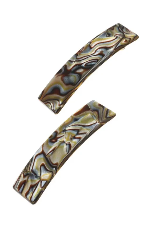 The France Luxe Rectangle Barrette Pair – Classic is an elegant set of barrettes. Handmade in France, these barrettes are made of high quality acetate afixed to a strong French style barrette clasp. This hair accessory set is ideal for most hair types. These versatile hair clips will be a useful, an elegant addition to your outfit with this easy hair style.