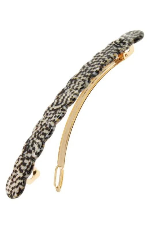 France Luxe Scalloped Long and Skinny Barrette – Classic is an eye-catching accent piece. Handcrafted in France and polished to perfection, the sleek barrette is a sophisticated styling solution for any occasion. With its graceful design and luxurious finish, this elegant hair clip will elevate any ensemble.